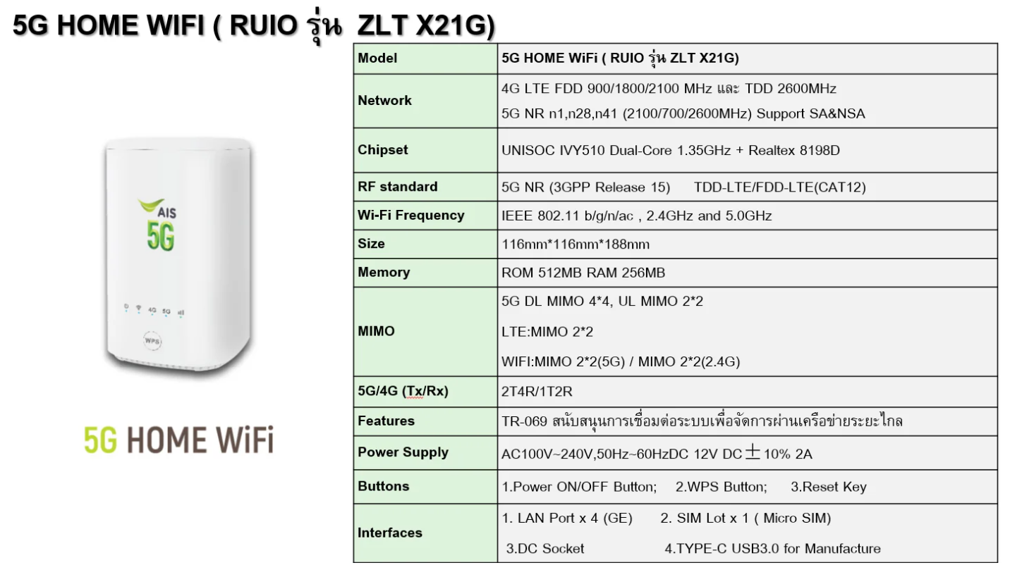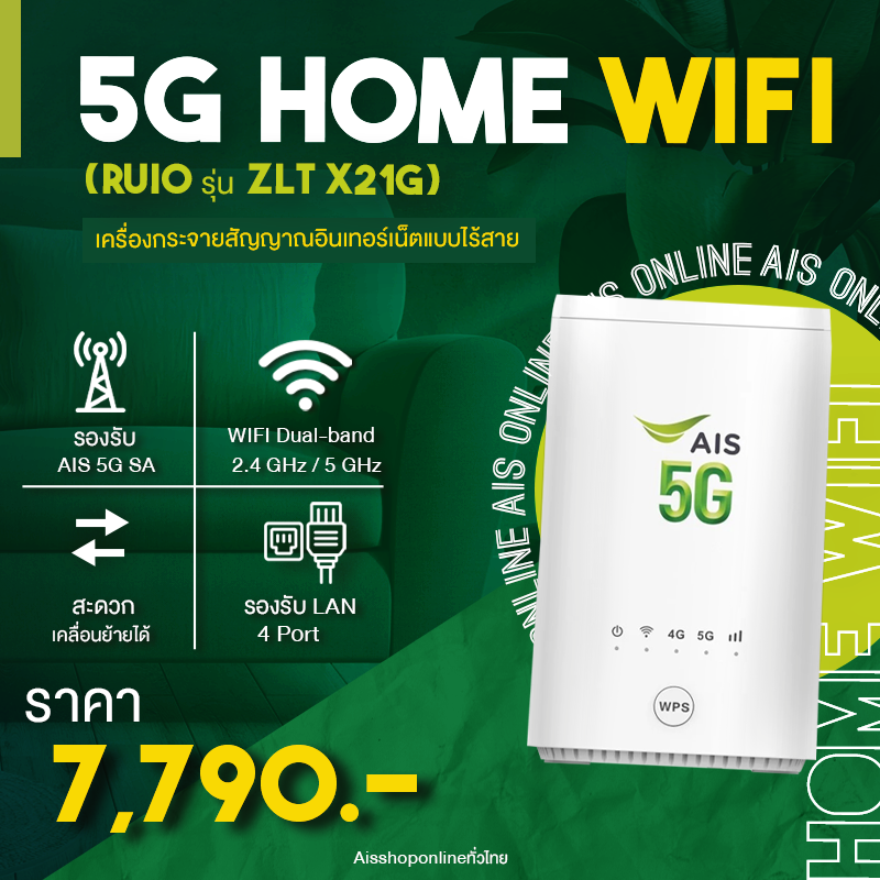 5G Home WiFi ( RUIO รุ่น ZLT X21G ) เป็นอุปกรณ์กระจายสัญญาณอินเทอร์เน็ตที่จะช่วยให้ผู้ใช้เข้าถึงออนไลน์ได้ง่ายๆ