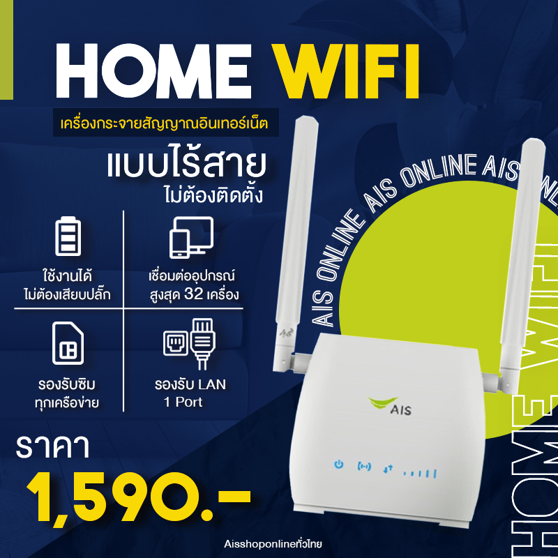 AIS Hi-Speed Home WiFi เป็นอุปกรณ์กระจายสัญญาณอินเทอร์เน็ตที่จะช่วยให้ผู้ใช้เข้าถึงออนไลน์ได้ง่ายๆ เพียงแค่ใส่ซิม AIS 4G และเสียบปลั๊ก ก็ใช้งานได้เลย เหมาะกับสถานที่ต่างๆ ที่โครงข่ายอินเทอร์เน็ตความเร็วสูงแบบสายเข้าไปไม่ถึง เช่น หอพัก หรือไซด์งานก่อสร้าง เป็นต้น โดย AIS Hi-Speed Home Wifi นี้จะเปลี่ยนคลื่นสัญญาณ AIS 4G ไปเป็น สัญญาณ WiFi