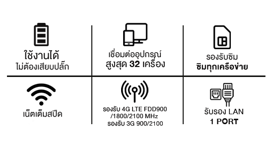 พร้อมกันได้ถึง 32 อุปกรณ์ และยังมีพอร์ต LAN จำนวน 1 พอร์ต