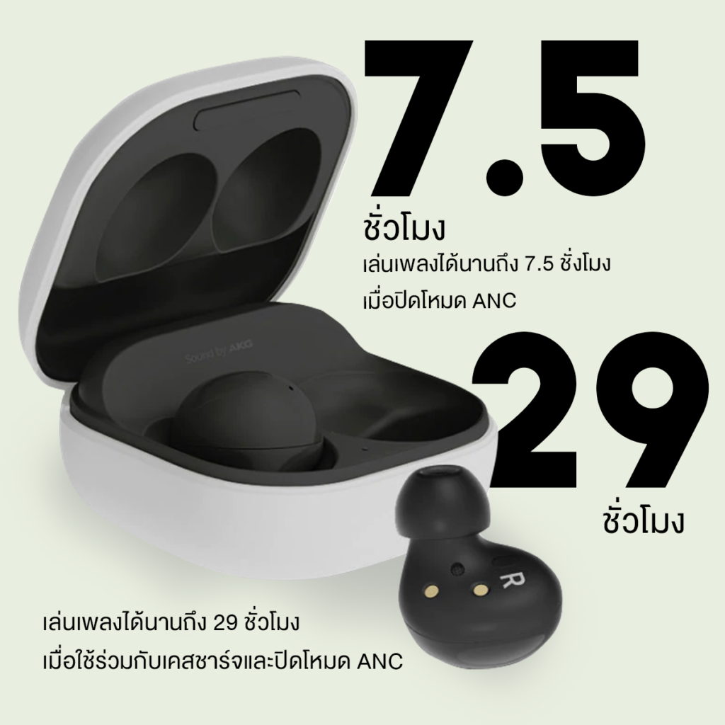 - แบตอึดชาร์จใช้ได้ทั้งวัน ใช้งานได้ยาวนานถึง 29 ชั่วโมงเมื่อปิดโหมด ANC